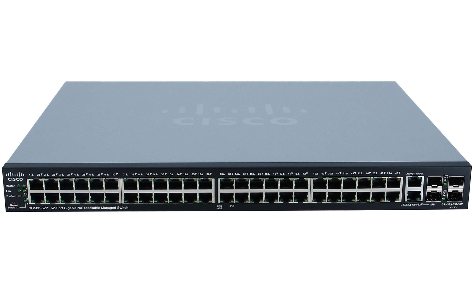 - Switch Cisco SG500-52P 48x 1G [RJ45], PoE+ [375W], 2x 1G [RJ45/SFP], 2x 1G/5G [SFP]