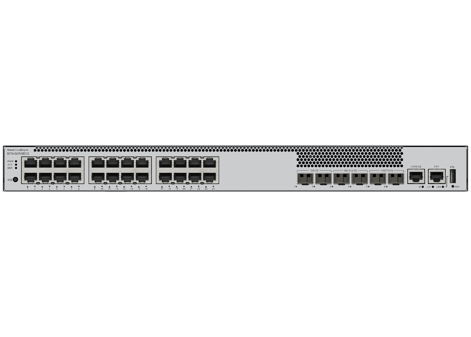 S5735-S24T4XEZ-V2 - 24x 1GE RJ45, 4x 10G SFP+, 2x 12G SFP Stack, bez zasilaczy, slot rozszerzeń, Huawei S5735-S-V2 Switch