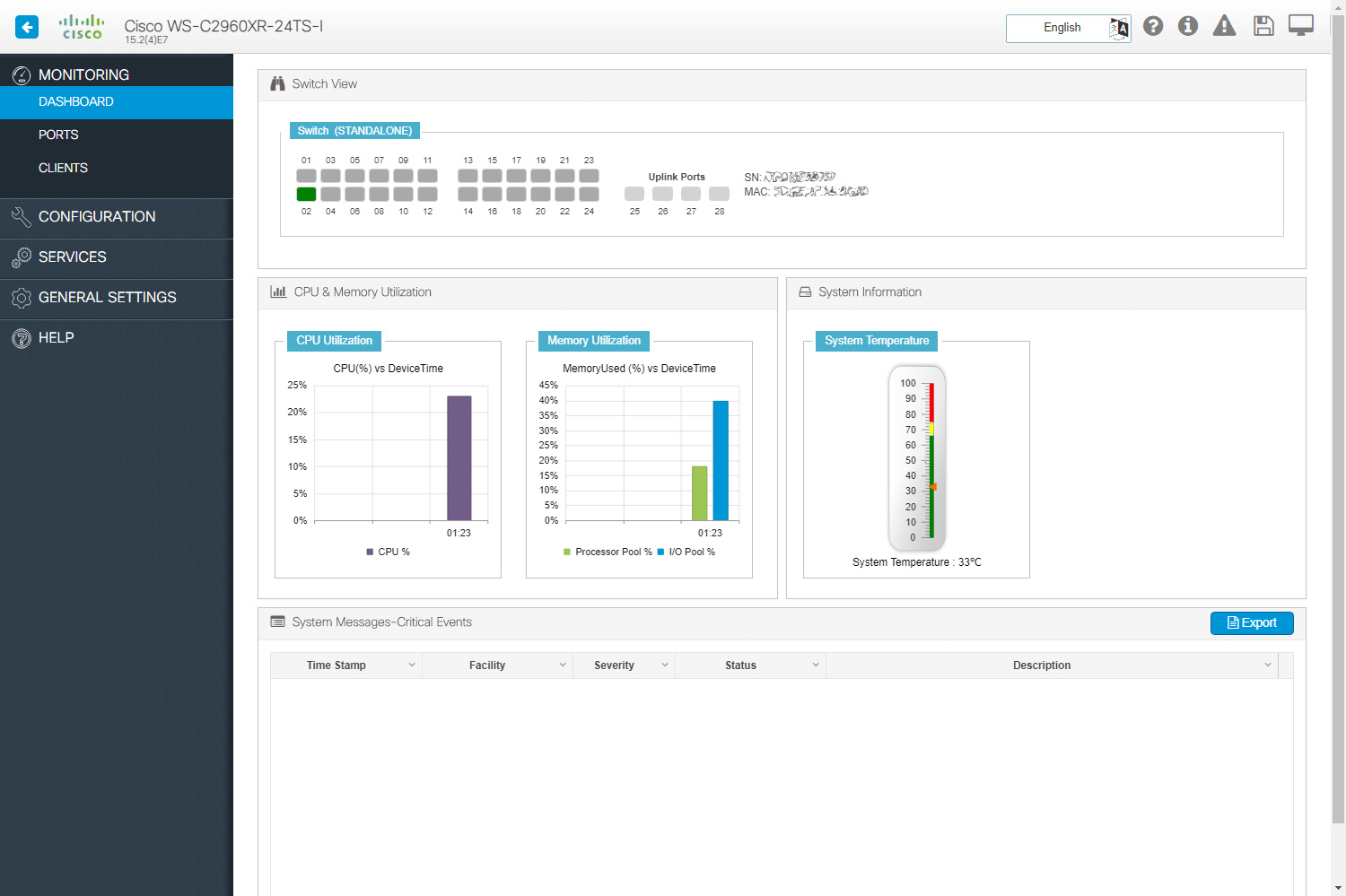 Model ten umożliwia zarządzanie poprzez linię komend CLI, jak również za pomocą odświeżonego interfejsu graficznego GUI Cisco Configuration Professional for Catalyst.
