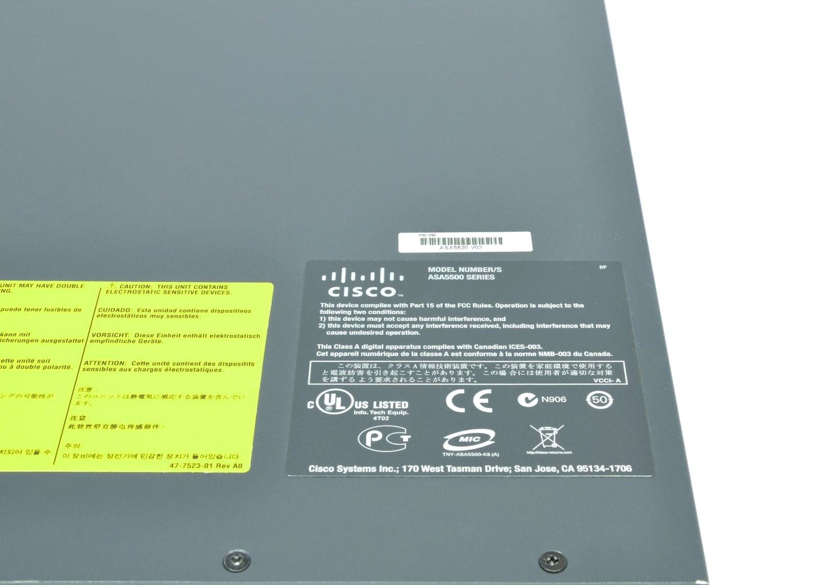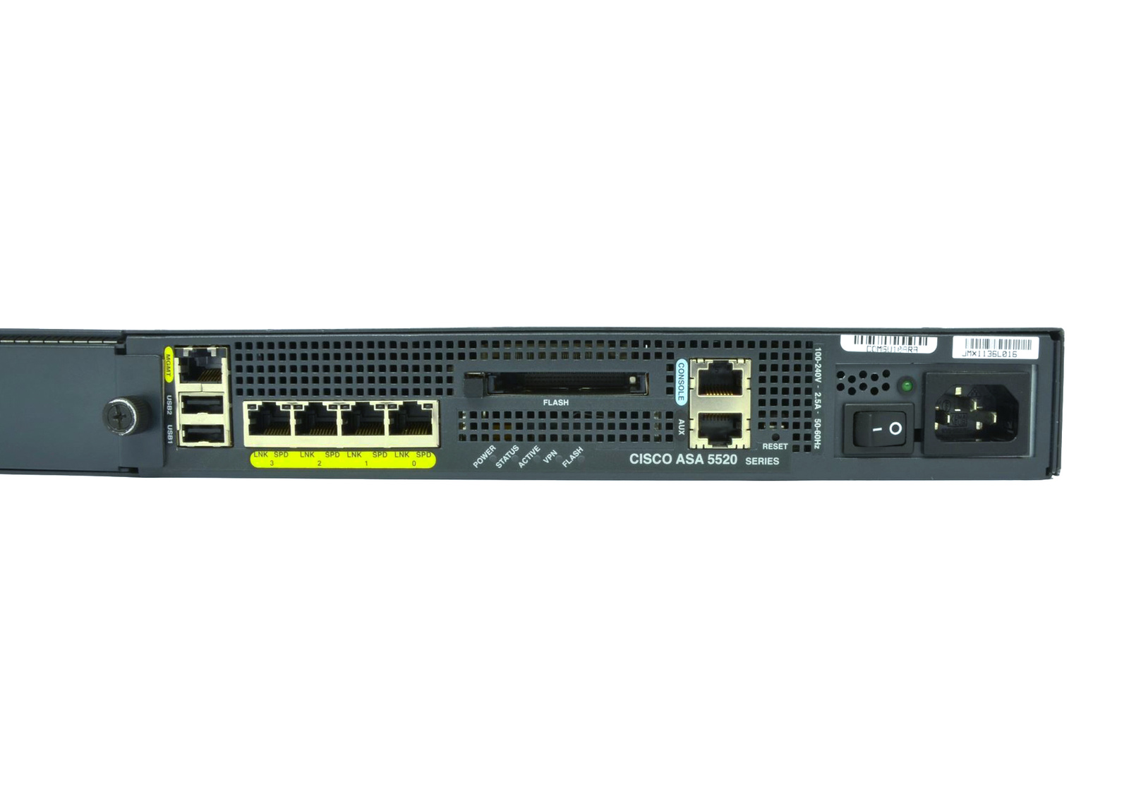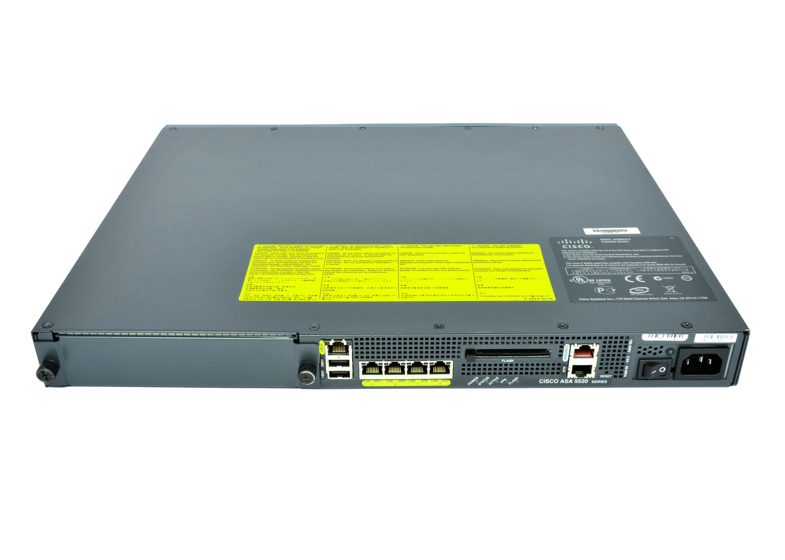 - Firewall Cisco ASA 5520 Appliance with SW, HA, 4GE+1FE, 3DES/AES, 2GB DRAM/256MB Flash, Security license